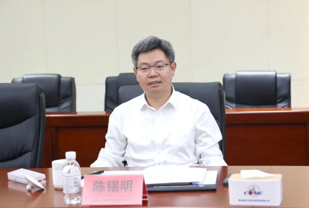 陳錫明一行深入航天青半科研生產現場,詳細了解任務研制、技術創新、產品生產等情況,聽取基本情況匯報,并就航天青半后續發展與大家深入交流。