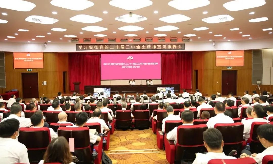 宣講會以線下線上相結合方式舉辦,集團公司黨建部門領導,三院領導班子成員和所屬單位領導班子成員等分別在主會場和視頻分會場聆聽了宣講。