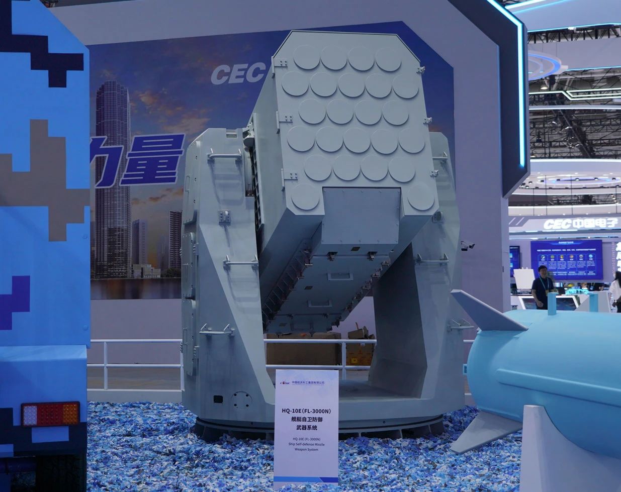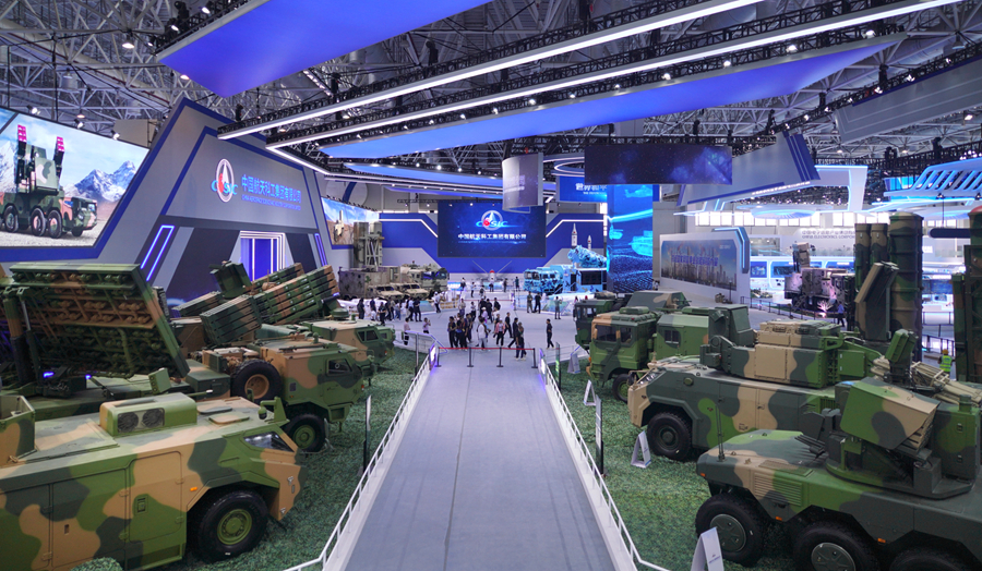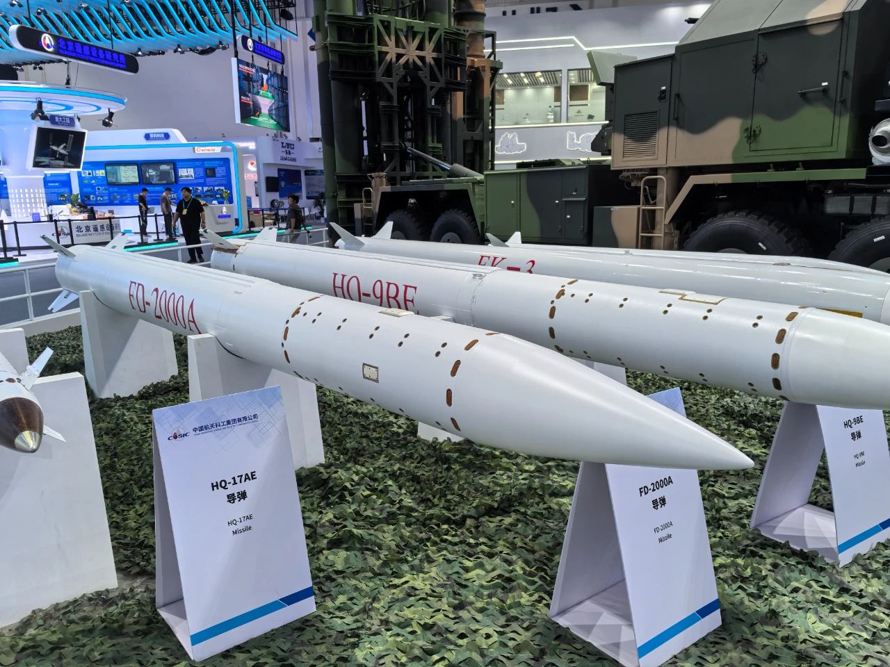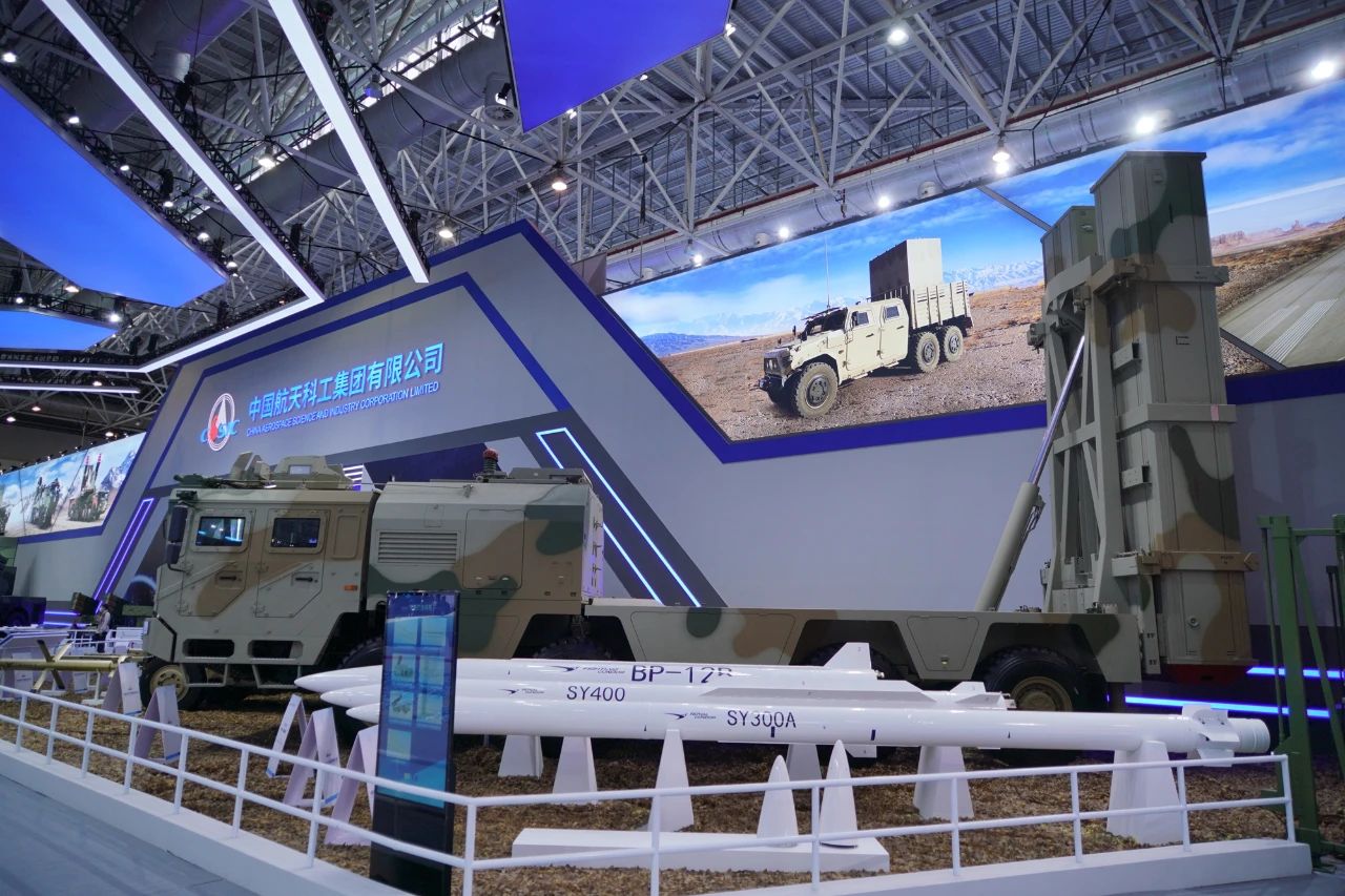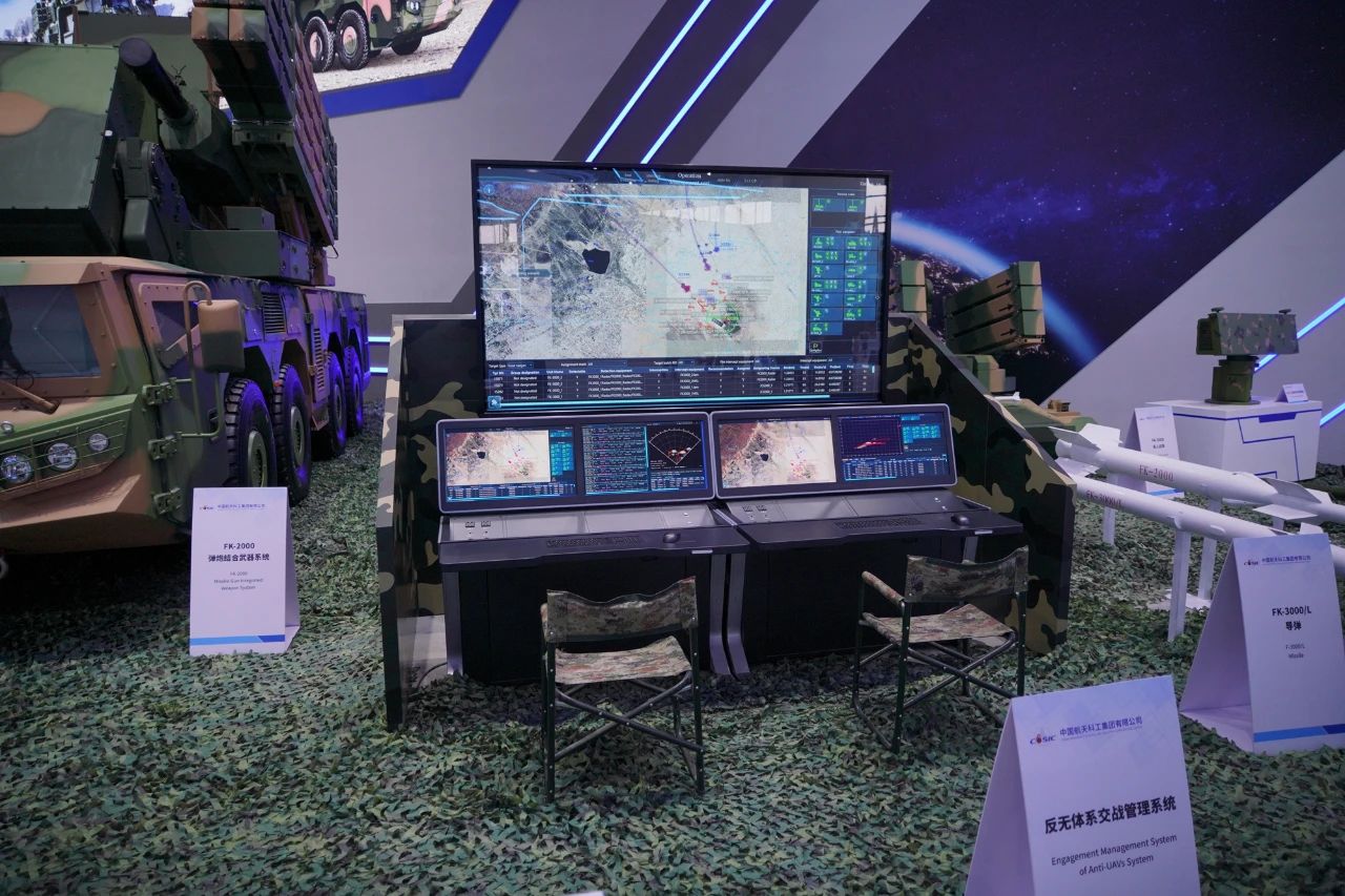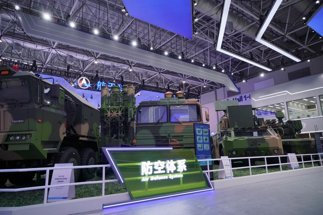 在中國航天科工集團有限公司防空體系展區(qū),HQ-9BE遠(yuǎn)程防空武器系統(tǒng)、FD-2000A中遠(yuǎn)程防空武器系統(tǒng)、FK-3中遠(yuǎn)程防空武器系統(tǒng)、HQ-17AE近程防空武器系統(tǒng)等“明星裝備”煥新亮相。