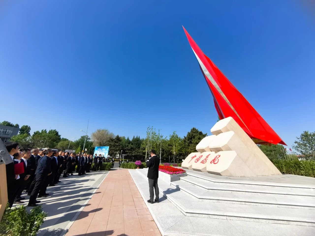升旗儀式結束后,在場干部職工集中前往飛航文化廣場參觀三院文化地標“中國飛航·超越”雕塑。在雕塑下,伴隨現場講解,大家了解了雕塑的內涵和意義,重溫了飛航發展歷史,進一步激發報國之志,匯聚起堅定履行強軍首責,建設世界一流飛航技術研究院的磅礴力量。