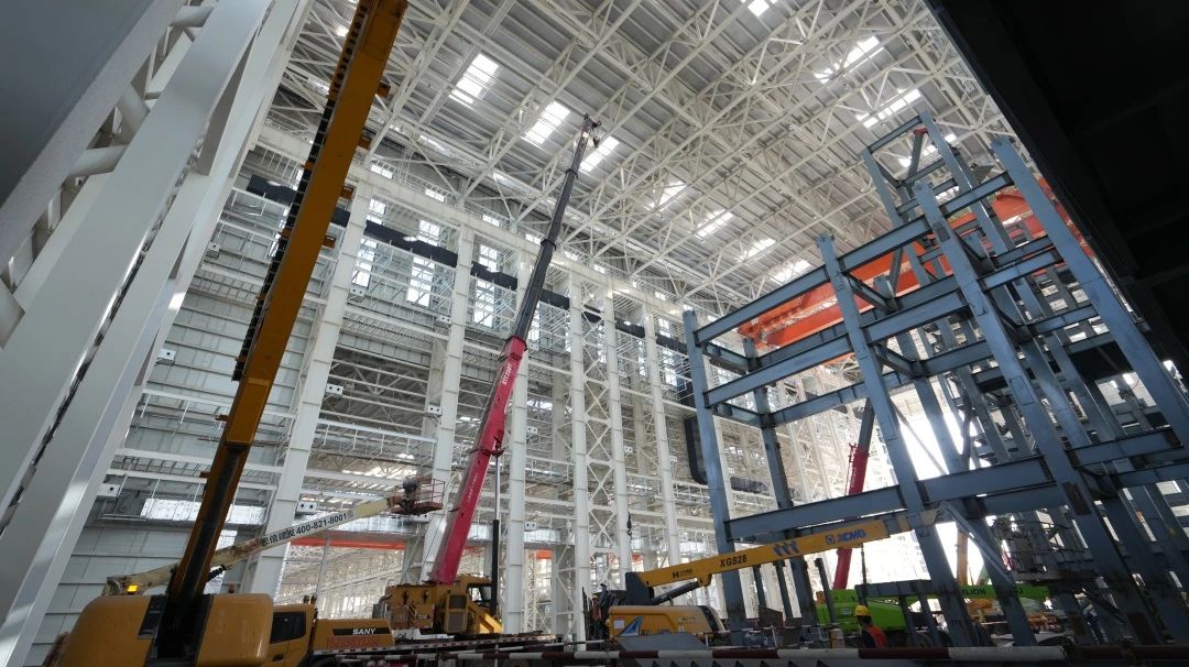 距離發(fā)射場幾公里外,文昌國際航天城牽頭建設(shè)的總裝測試廠房主體結(jié)構(gòu)已然明朗,廠房總面積30000多平方米,低跨廠房能容納2條脈動式生產(chǎn)線,高跨廠房高約50米,將實現(xiàn)火箭分級垂直總裝測試??傃b測試廠房和發(fā)射場將通過一條公路連接起來,這也是海南國際商業(yè)航天發(fā)射中心的創(chuàng)新之處——火箭將首次采用“小三垂”測發(fā)模式,也就是分段垂直總裝、測試、運輸,最終在一號工位完成發(fā)射。