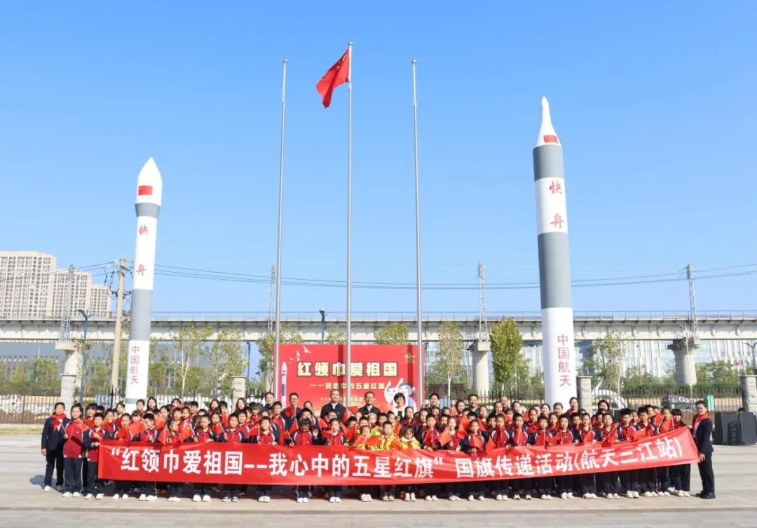 10月23日,由全國少工委聯(lián)合中國載人航天工程新聞宣傳辦公室舉辦的“紅領(lǐng)巾愛祖國——我心中的五星紅旗”國旗傳遞活動,在湖北武漢國家航天產(chǎn)業(yè)基地快舟火箭產(chǎn)業(yè)園舉行。共青團(tuán)湖北省委領(lǐng)導(dǎo)、湖北省少工委、共青團(tuán)武漢市委、武漢市新洲區(qū)、航天科工九院及所屬火箭公司等相關(guān)負(fù)責(zé)同志及代表,武漢市新洲區(qū)雙柳街中心小學(xué)、武漢市十一實驗學(xué)校少先隊員、少先隊輔導(dǎo)員代表,共計100余人參加活動。