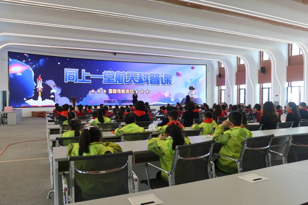 升旗儀式結(jié)束后,來自火箭公司的青年科技工作者唐詩,為少先隊員們上了一堂科普課,從載人航天和可回收火箭等最為好奇的熱門話題引入,講解了快舟火箭的誕生和發(fā)展,介紹了東方紅、北斗、嫦娥、天宮等國家重大航天項目,生動點亮了少年們的航天夢。圍繞“紅領(lǐng)巾愛祖國”主題,少先隊們員現(xiàn)場進(jìn)行熱烈互動和交流。