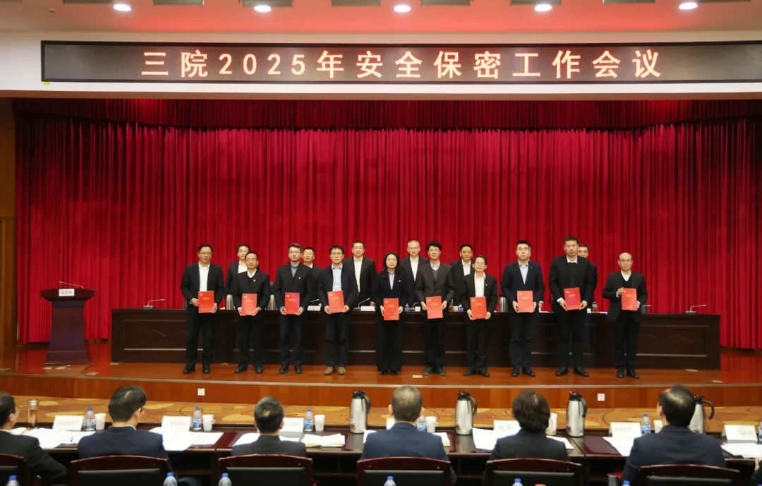 會議作了題為《強(qiáng)化問題導(dǎo)向 提升治理能力 以高水平安全促進(jìn)高質(zhì)量發(fā)展》的安全保密工作報(bào)告,宣讀了三院2024年度安全生產(chǎn)、保密、保衛(wèi)工作先進(jìn)表彰的決定,通報(bào)了三院2024年《安全保密責(zé)任書》考核完成情況,并作2025年《安全保密責(zé)任書》說明。院領(lǐng)導(dǎo)向三級單位黨政主要負(fù)責(zé)人頒發(fā)了2025年《安全保密責(zé)任書》。