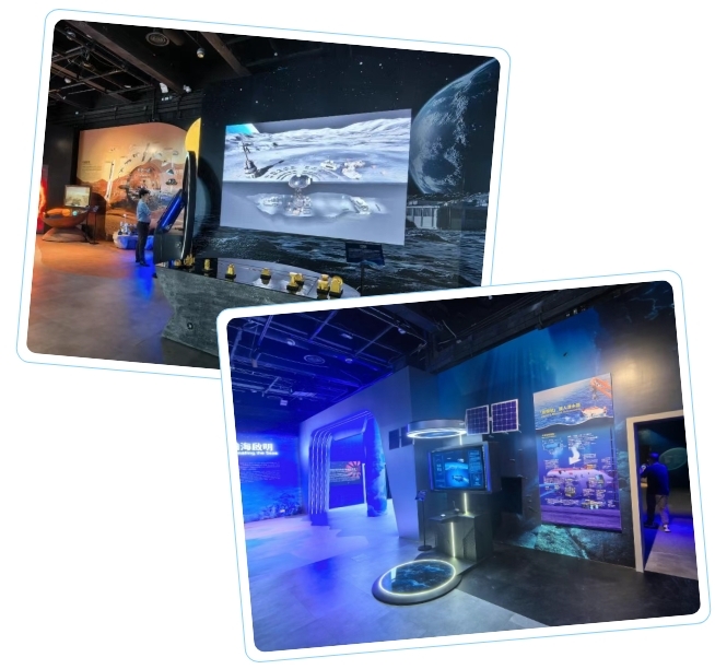 除了嫦娥六號采集的月壤等一系列國寶級展品的展出以外,本次展覽還有一大亮點:項目團隊充分發揮多媒體集成與軟件開發優勢,創造性地打造了“三航”CAVE沉浸式空間、虛擬現實的“月球基地”、“我的火星生活”“我的祝融號”“我的太陽系”、空間站體驗、“海天對話”等多個自主研發的展項。其中,迭代升級后的“海天對話”在語音識別能力上有了大幅提升,視頻、音頻、文字等多種內容載體的結合也使得展項交互變得更加豐富。