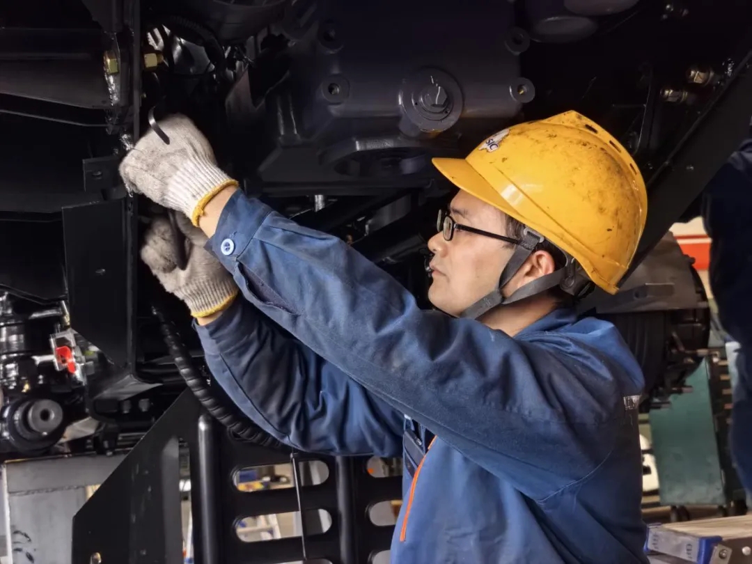 清晨,在三瓦公司生產(chǎn)現(xiàn)場,裝配工正在開展特車底盤質(zhì)量檢查,他仔細(xì)對(duì)螺栓扭矩、管路線束、液體加注等關(guān)鍵環(huán)節(jié)逐一核查,不放過任何一處潛在質(zhì)量隱患,嚴(yán)守質(zhì)量關(guān)口,全力保障底盤質(zhì)量過硬。(圖文/楊毅)
