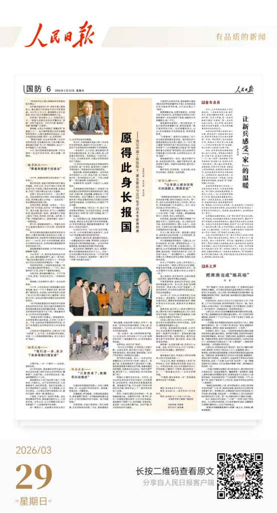 3月29日,《人民日報》國防版面刊發專題報道,深情追憶中國工程院院士、著名雷達與空間電子技術專家黃培康,講述了他將畢生心血奉獻給中國航天事業,在“無人區”勇毅跋涉,矢志報國、甘為人梯的感人事跡。