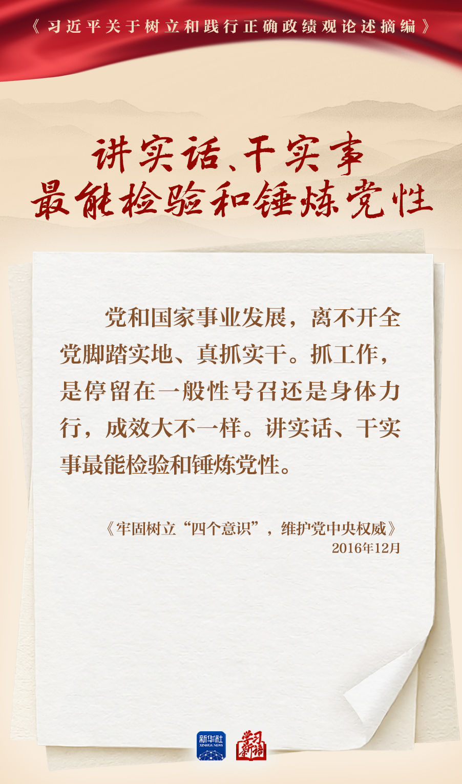 樹立和踐行正確政績觀學(xué)習(xí)教育正在全黨開展。真抓實(shí)干,是共產(chǎn)黨人的鮮明品格,也是成事之道。我們選取《習(xí)近平關(guān)于樹立和踐行正確政績觀論述摘編》一書中的相關(guān)重要論述,一起學(xué)習(xí)領(lǐng)會。