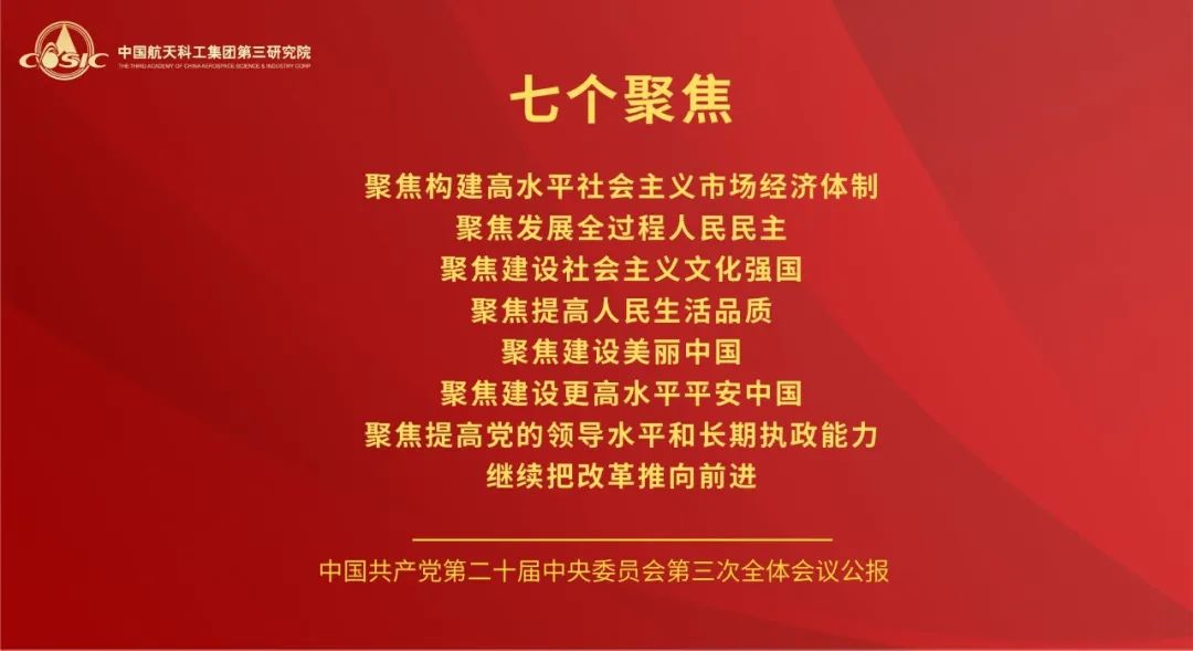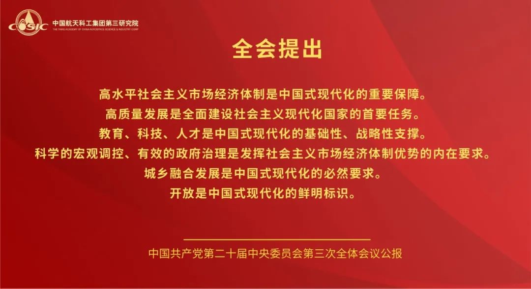 黨的二十屆三中全會(huì),是在以中國(guó)式現(xiàn)代化全面推進(jìn)強(qiáng)國(guó)建設(shè)、民族復(fù)興偉業(yè)的關(guān)鍵時(shí)期召開的一次十分重要的會(huì)議。航天三院黨委將學(xué)習(xí)好宣傳好貫徹好黨的二十屆三中全會(huì)精神作為當(dāng)前和今后一個(gè)時(shí)期的一項(xiàng)重大政治任務(wù),高度重視,迅速行動(dòng),引導(dǎo)三院全體黨員干部職工把思想和行動(dòng)統(tǒng)一到全會(huì)精神上來,把智慧和力量凝聚到落實(shí)全會(huì)精神和部署上來,聚焦主責(zé)主業(yè),履行強(qiáng)軍首責(zé),持續(xù)推動(dòng)飛航事業(yè)高質(zhì)量發(fā)展。