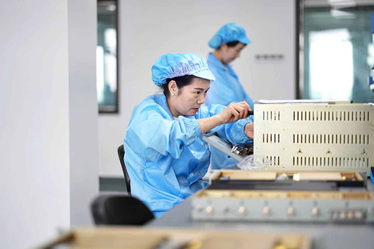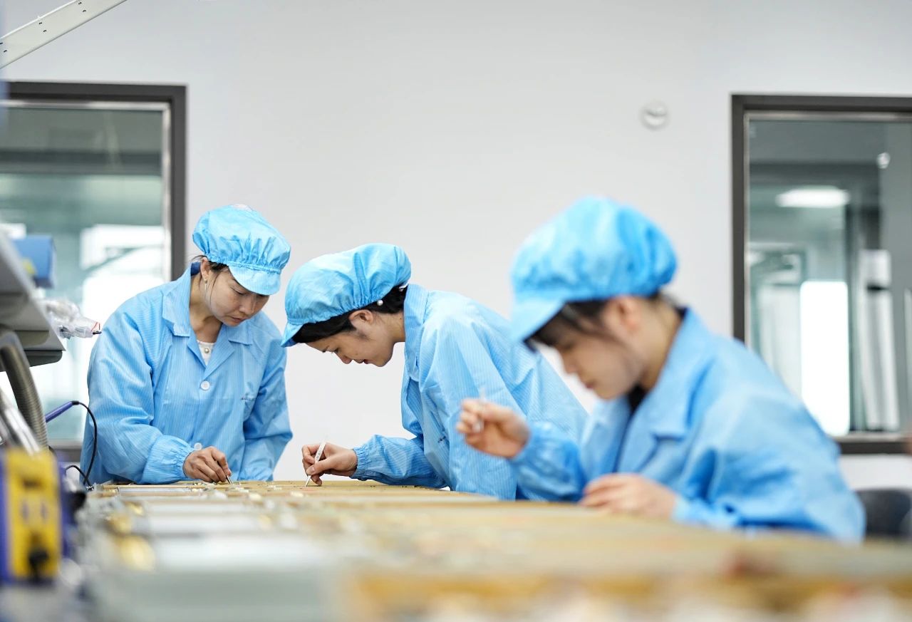 近年來,電裝組邁步向現代化生產模式轉型,在工藝、技能上不斷創新,幫助公司多個重要型號實現核心組件功能。在金屬背板上,0.2毫米的棱形角比芝麻還小,她們卻以線槍為“針”,將直徑0.4毫米的絞線精準纏繞;在被稱為“微雕”的加工工序上,她們將不足發絲一半粗的導線,焊接在寬度一致的印制板線路上,不僅能精準把握細如流絲的用錫量,還能完美復刻印制板的金屬紋路圖案。