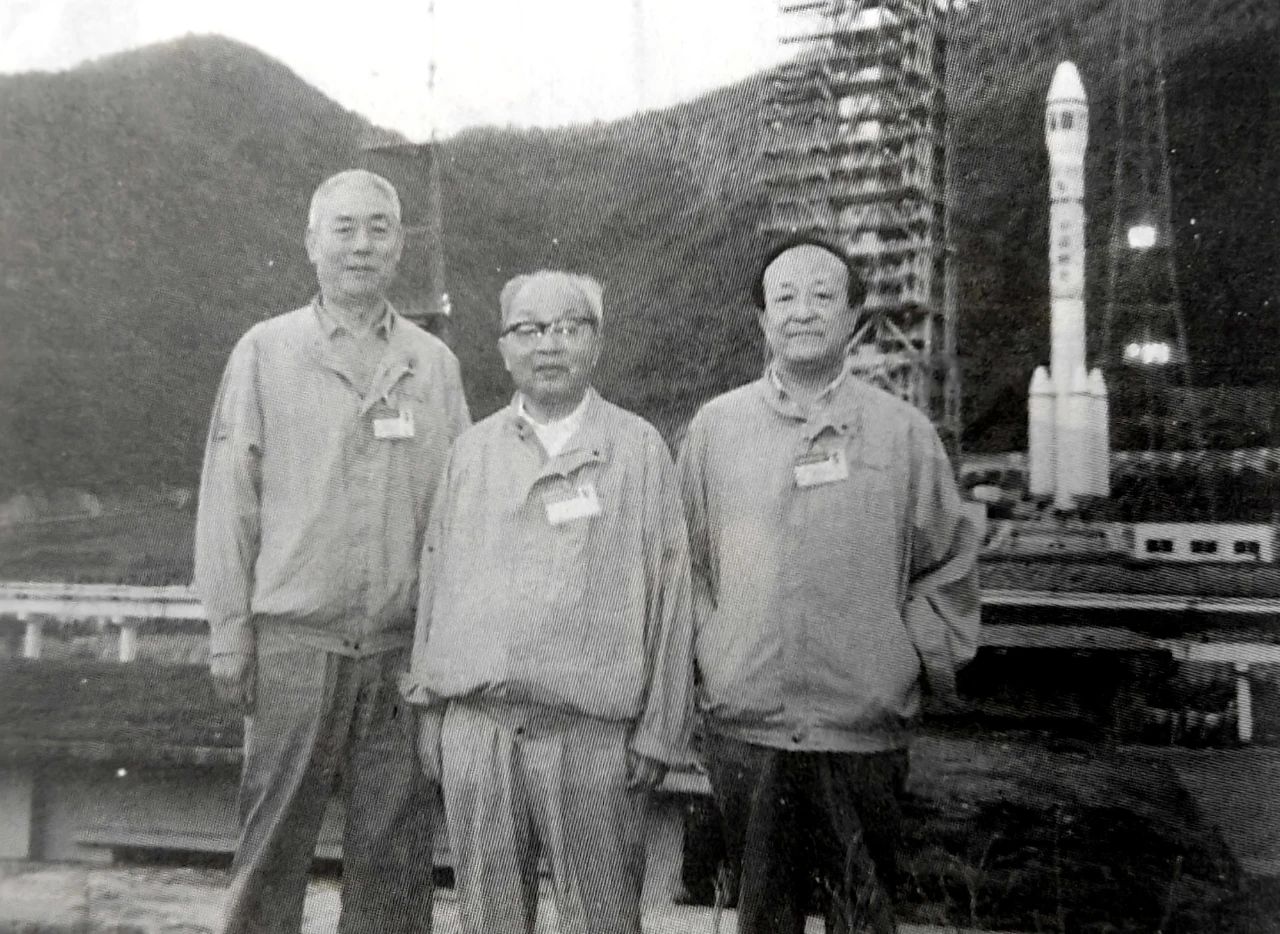 1992年8月9日,屠守鍔(中)在長征二號E運(yùn)載火箭發(fā)射現(xiàn)場