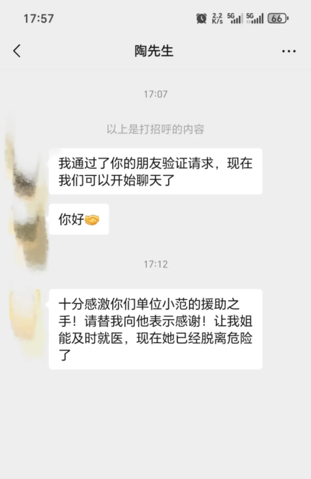 圖為傷者弟弟陶先生向范愛平致以感謝