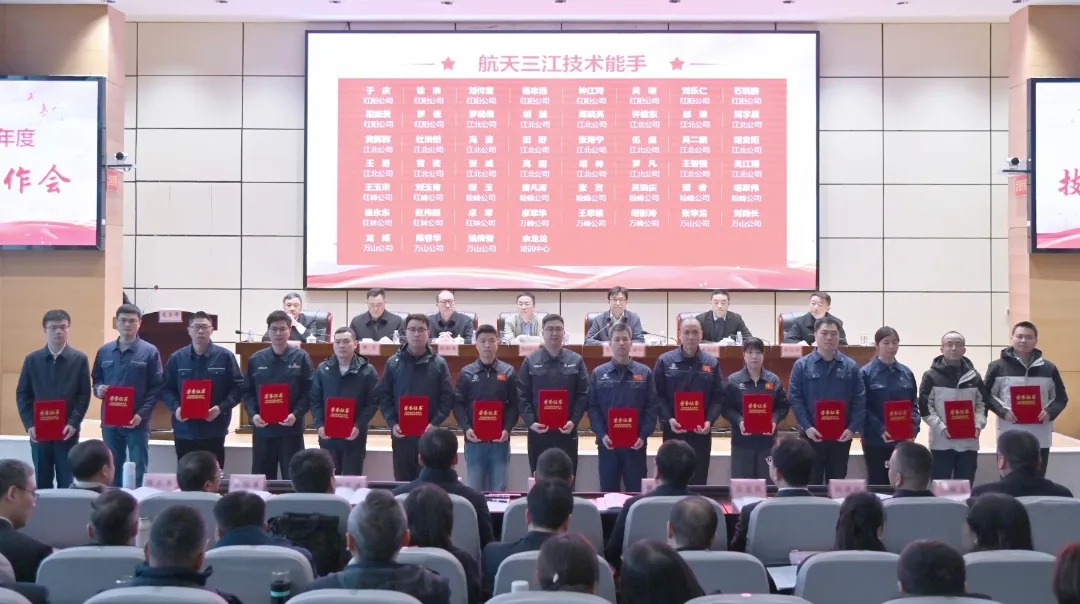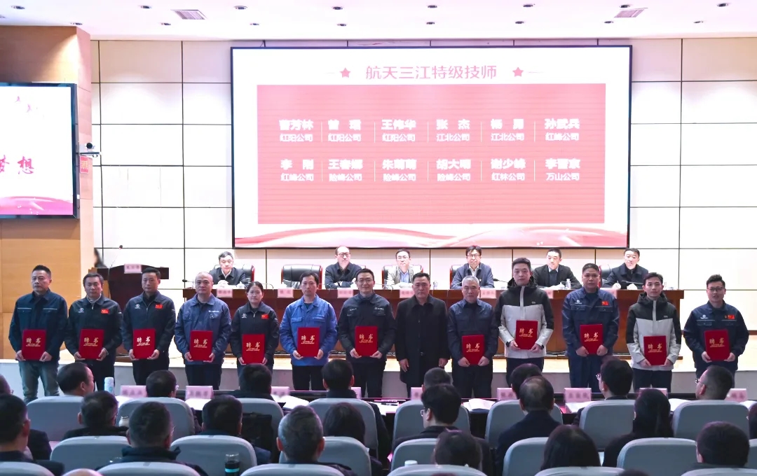 會上,與會人員集中觀看了航天三江技能人才宣傳片,紅陽公司、江北公司、險峰公司、萬山公司、培訓中心等5家單位代表分享了技能人才工作經驗,紅林公司鄒峰、萬峰公司李才勝、紅峰公司劉玉青作為高技能人才代表分享了個人對技能人才成長的思考與建議。會議還轉授了湖北省技能大師工作室銘牌,向航天三江2025年度大師工作室、技能大師、技術能手等頒發聘書和榮譽證書,并舉行航天三江黨校教育實踐基地授牌活動。